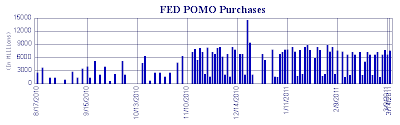 The FED performed another POMO (Permanent Open Market Operation) purchase today in the amount of $7.560 billion dollars. This brings the total since November 3rd 2010 (when the FED announced the printing of $600/900 billion dollars by June 2011) to $434.293 billion and $498.753 billion since August 2010.